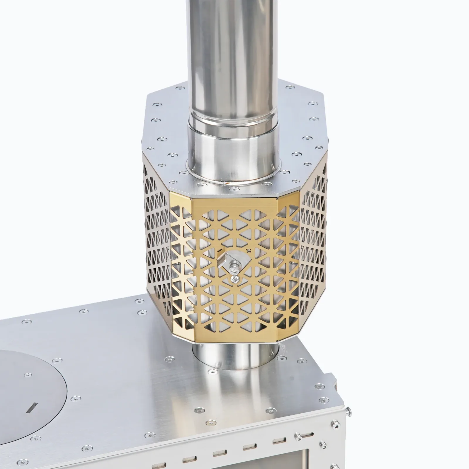- Stable Coaxial Chimney Design The inlet and outlet chimney pipes are aligned on the same axis, ensuring the center of gravity remains balanced. This allows the platform to be stably installed on top of your stove without any offset, removing the need for additional support brackets.